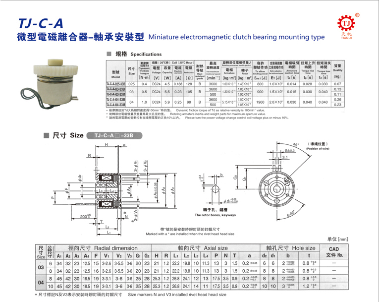 TJ-C-A微型電磁離合器規(guī)格圖如下: