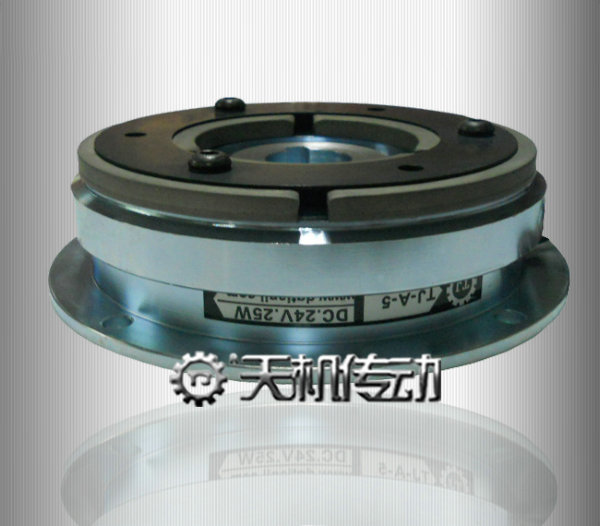 天機(jī)傳動(dòng)摩擦式電磁離合器由銜鐵(電樞板)、定子、轉(zhuǎn)子、板型彈簧片、磁性線圈、來令片、軸承等元件構(gòu)成,統(tǒng)一使用DC24V,標(biāo)準(zhǔn)規(guī)格0.6-40KG。